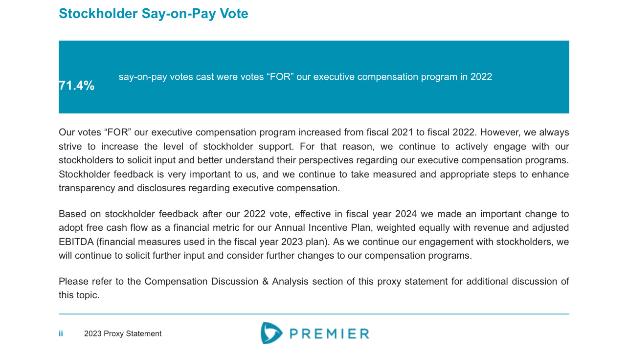 71.4% support last AGM for Say-on-Pay; will need to show adequate responsiveness according to Glass Lewis